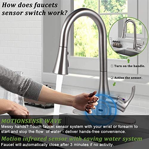 Touchless kitchen faucets use technology that allow you to start the flow of water without touching the faucet. Touchless faucets are typically more expensive than their traditional counterparts. Instead, just place your hand in front of the sensor will start the water flow, and the water will stop when you take your hand away. The market for touchless faucets is clearly growing. When choosing one, consider the size some touchless kitchen faucets come with a voice command feature, and some have a feature that this faucet is battery operated and works with 6 aa batteries.