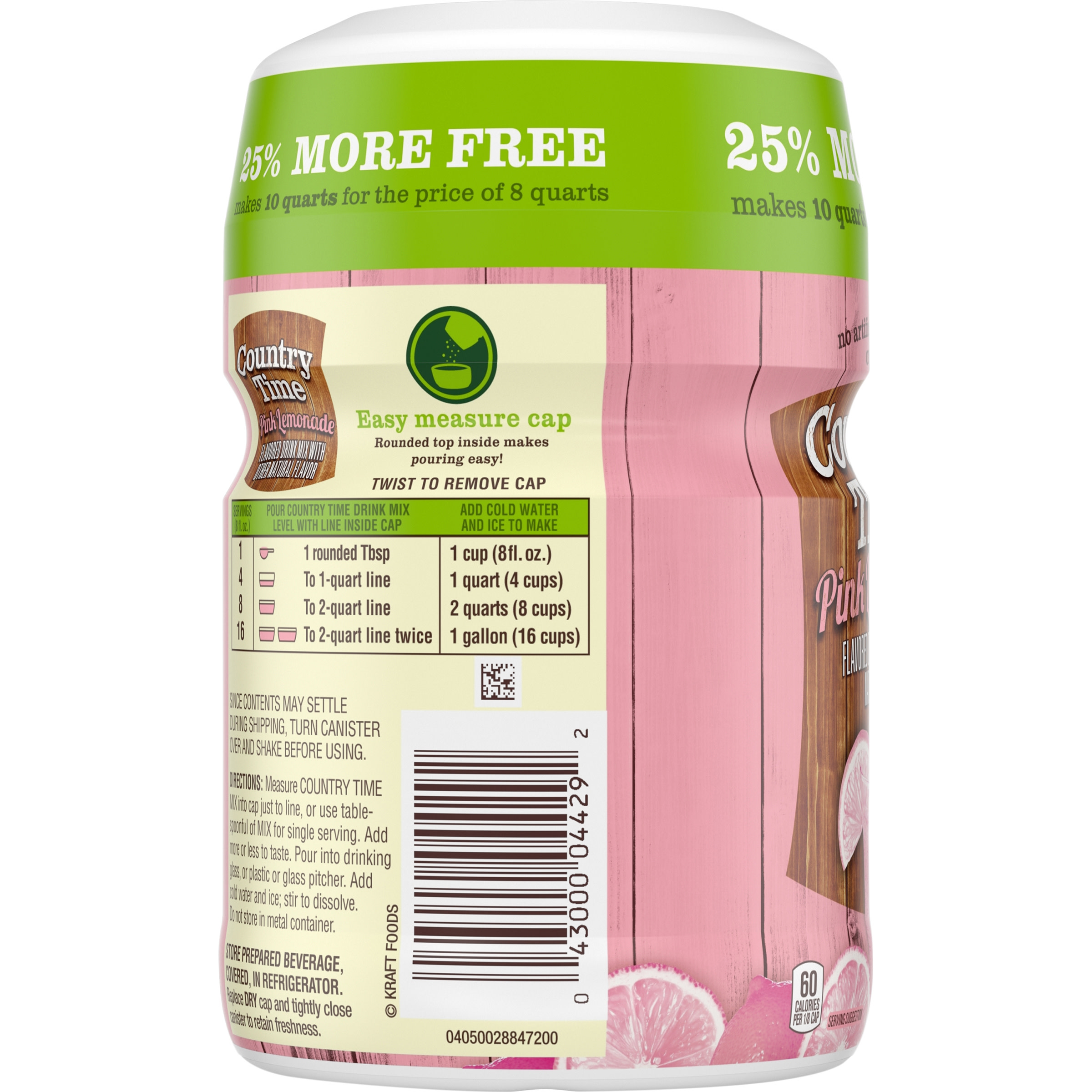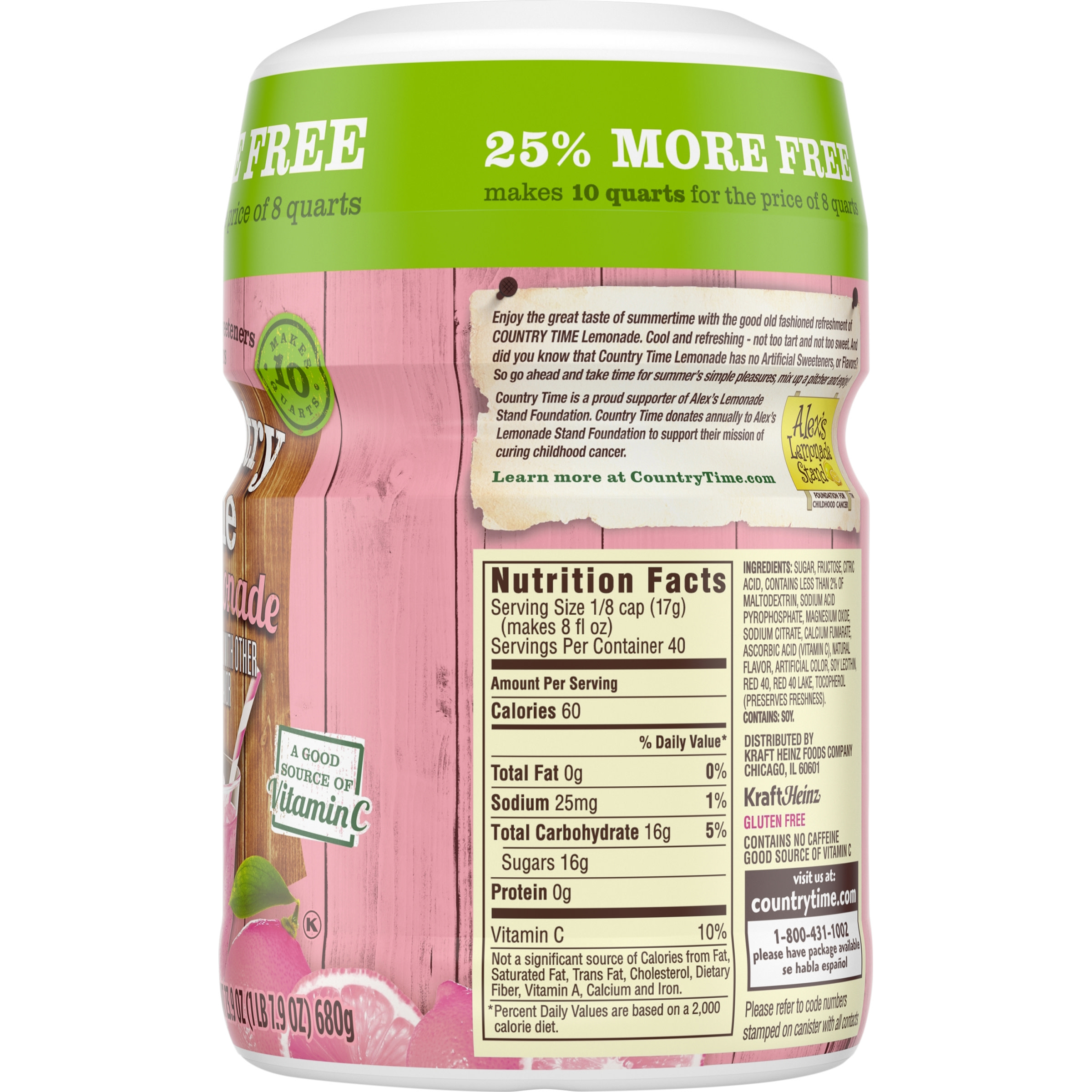 Country time strawberry lemonade drink mix 18oz. Save when you order country time drink mix pink lemonade sugar sweetened and thousands of other foods from giant online. Make your own instant lemonade. How many carbs are in country time pink lemonade naturally flavored powdered drink mix? Select locations now offer curbside .
